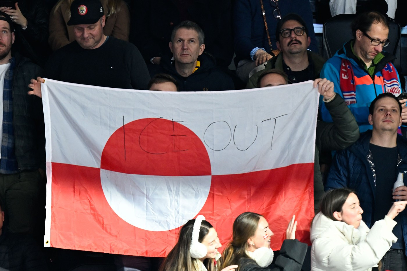 Hokejové utkání mezi USA a Dánskem, které Američané nakonec vyhráli 6:3, přineslo absurdní scénu v hledišti. Dva diváci – Vita Kalnina a Alexander Kalninš – rozvinuli grónskou vlajku. Poprvé během rozbruslení, podruhé ve chvíli, kdy Dánsko vstřelilo úvodní branku.