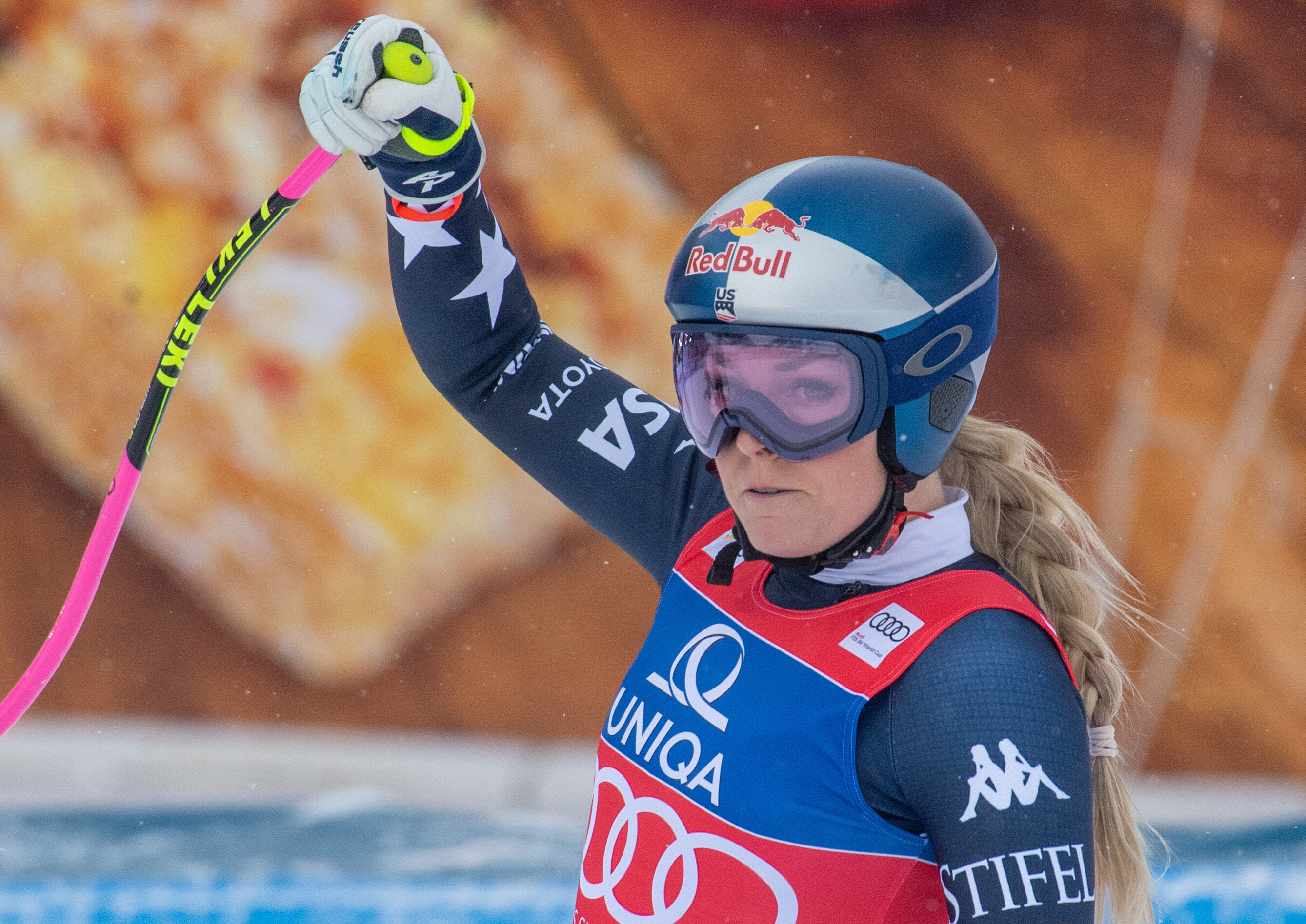 Při závodě ve sjezdu ztratila po kontaktu s brankou rovnováhu, upadla a utrpěla závažné poranění pravé dolní končetiny a ještě se udeřila silně hlavou o sjezdovku. Sama nebyla schopna vstát a ze svahu ji transportoval vrtulník. Následovala série pěti operačních výkonů, z toho poslední už ve Spojených státech po převozu speciálním letem.